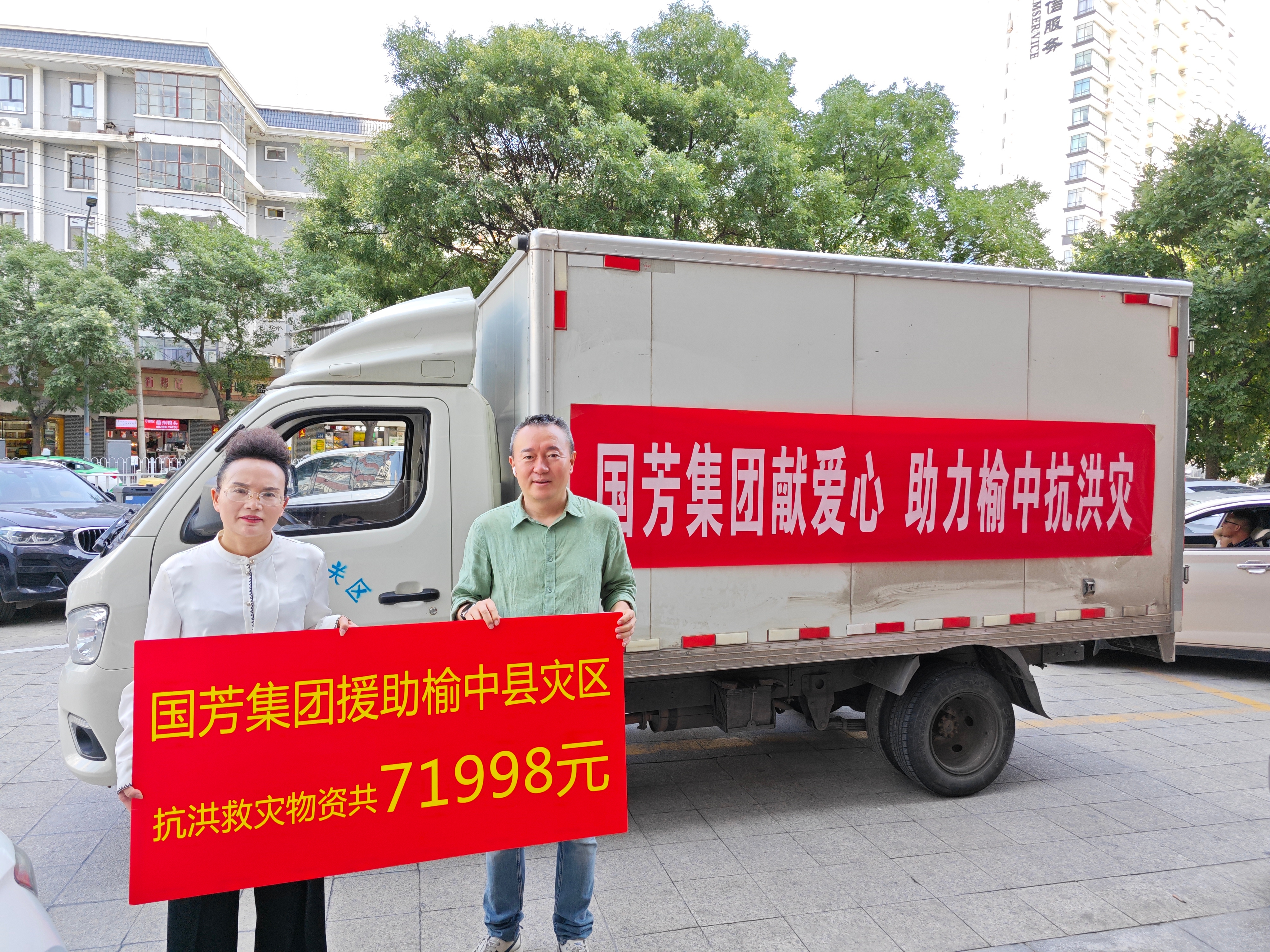 在這場與洪水的戰(zhàn)斗中,社會各界也紛紛伸出援手,展現出了強大的凝聚力和愛心。國芳集團作為本土企業(yè),始終心系家鄉(xiāng)人民,積極響應政府號召,在得知榆中縣受災的消息后,第一時間聯動城關區(qū)商務局、蘭州市應急管理科,緊急籌備救援物資。自熱米飯、方便面、礦泉水等生活物資迅速籌集到位,價值7萬余元的物資承載著國芳集團對受災群眾的深深牽掛和關切。